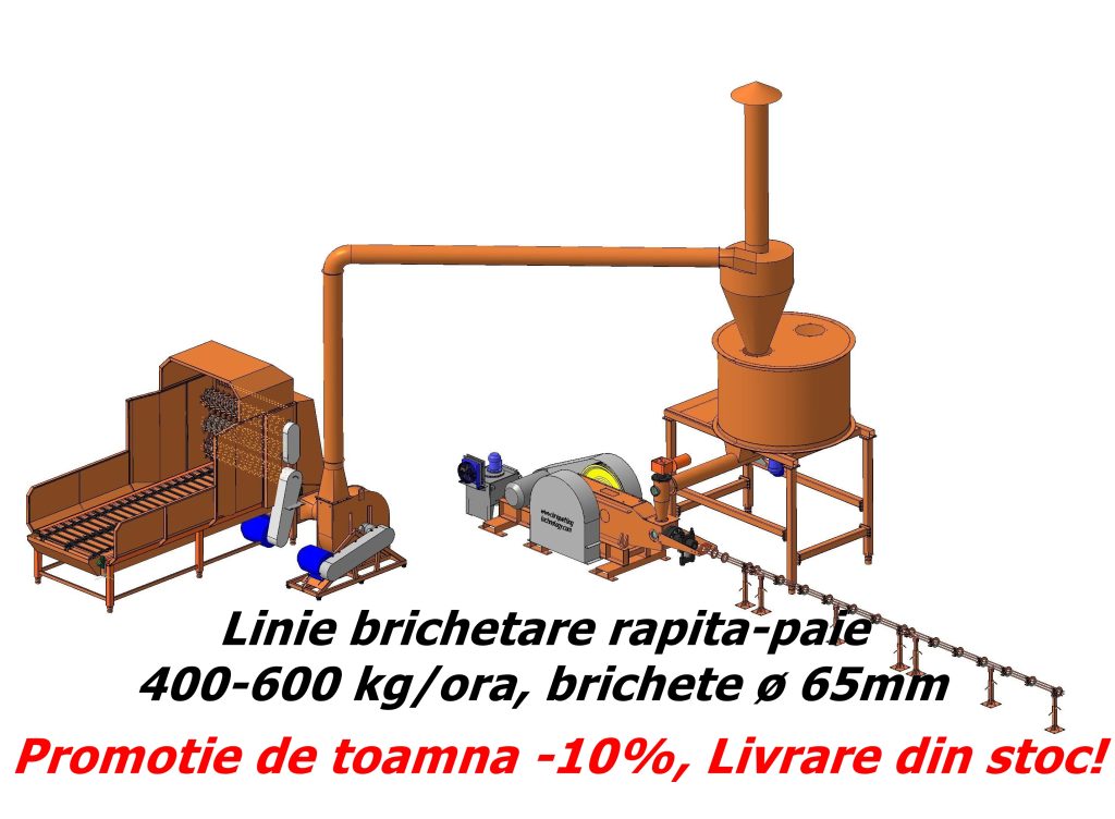 Linie brichetare completa – Fabrica brichetare din paie si resturi vegetale până la 400-600 kg/ora, brichete 65-70 mm